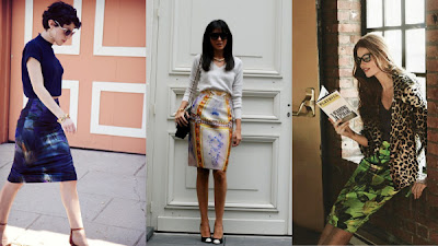 Apostar em materiais diferentes, como couro, ou em cores diferentes (dá para aproveitar a tendência das candy colors!!) é um caminho. Mas, as mais ousadas e fashionistas hão de concordar que a saia lápis estampada - e até usada em um mix de estampas - deixa tudo ainda mais atual e lindo!!